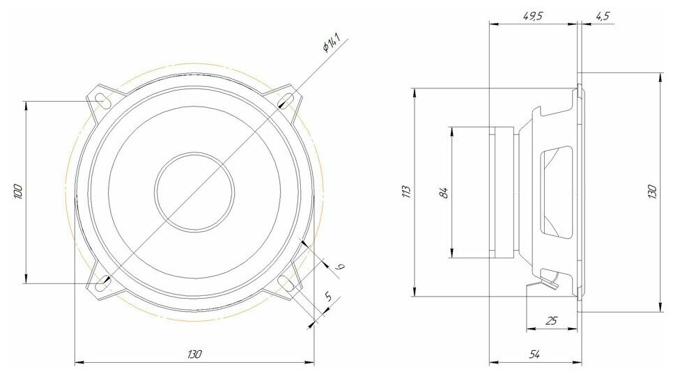 Component acoustics element. Speaker range of mid and high frequencies. Resistance