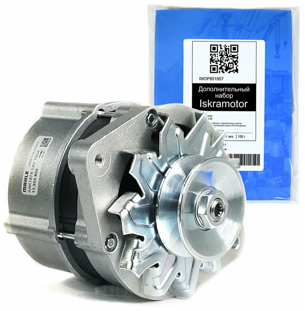 Generator AAK1878 IMA303850, MG 502, 11.203.850 with additional Iskramotor kit for Yanmar 4TNV98 3.3 l engines, GEHL front loaders. Analogs: Gehl 241459, 194165, AAK1830. 14V 95A