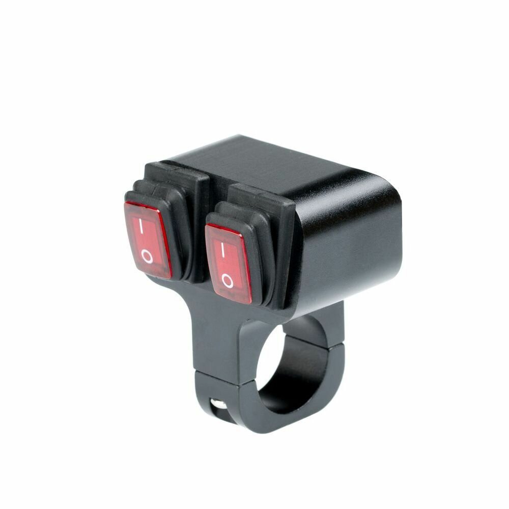 Waterproof switch 2221, two-button, red button, body color black, for pipe D22mm