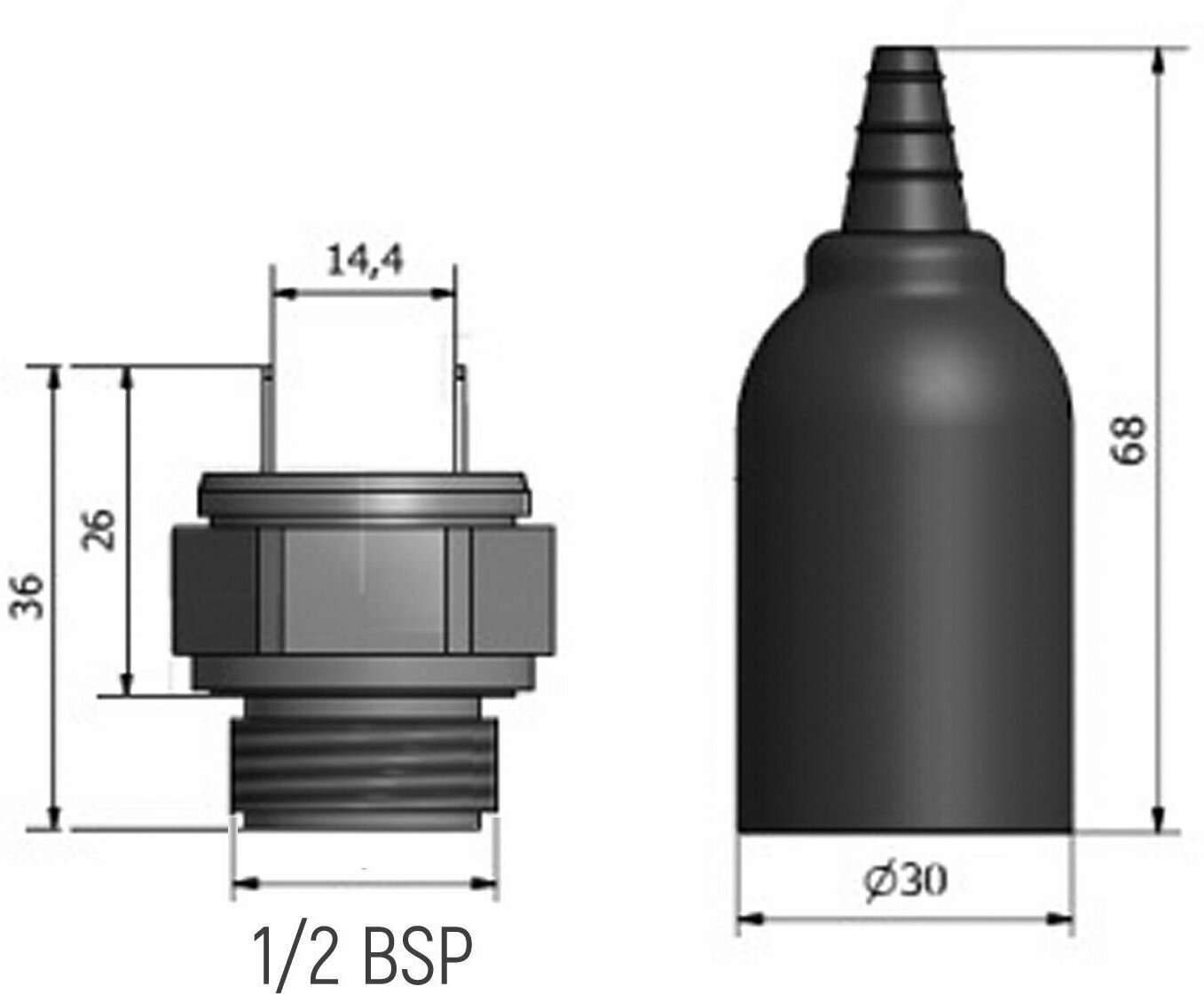 Bimetallic thermostat TF46A14/P1 BSP / fan switch sensor with thermal relay at 60-55 degrees, NO contacts open / with rubber cap