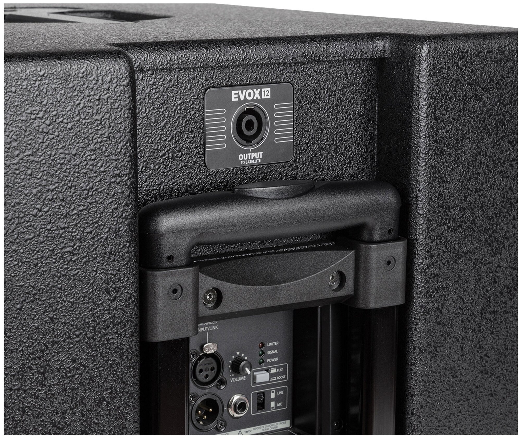 LF power - 500 W, HF - 200 W; peak power LF - 1000 W, HF - 400 W; 3 handles on the body, 1 retractable and 2 wheels for transport