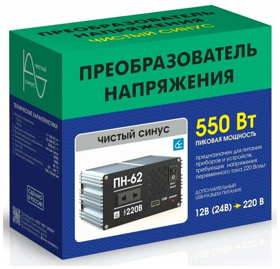 Inverter, 180 W, 1 USB, connection to battery: cigarette lighter, input. voltage: 12 V, 11-15, output. voltage: 220V, 220.000, short circuit protection, overheat protection, overload protection