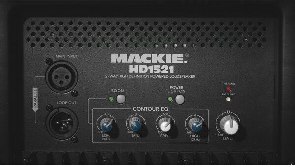 3-band EQ: +/-3 dB at LF 80 Hz, MF 100 Hz - 8 kHz, HF 12 kHz; amplifier: LF - 700 W rms 1400 W peak, HF - 100 W rms 200 W peak; hanging possibility