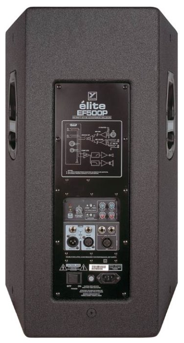 HF amplifier power - 150 W, LF - 650 W; inputs - XLR, 3x6.3 mm jack, microphone XLR, outputs - XLR, 6.3 mm jack; 2 band equalizer