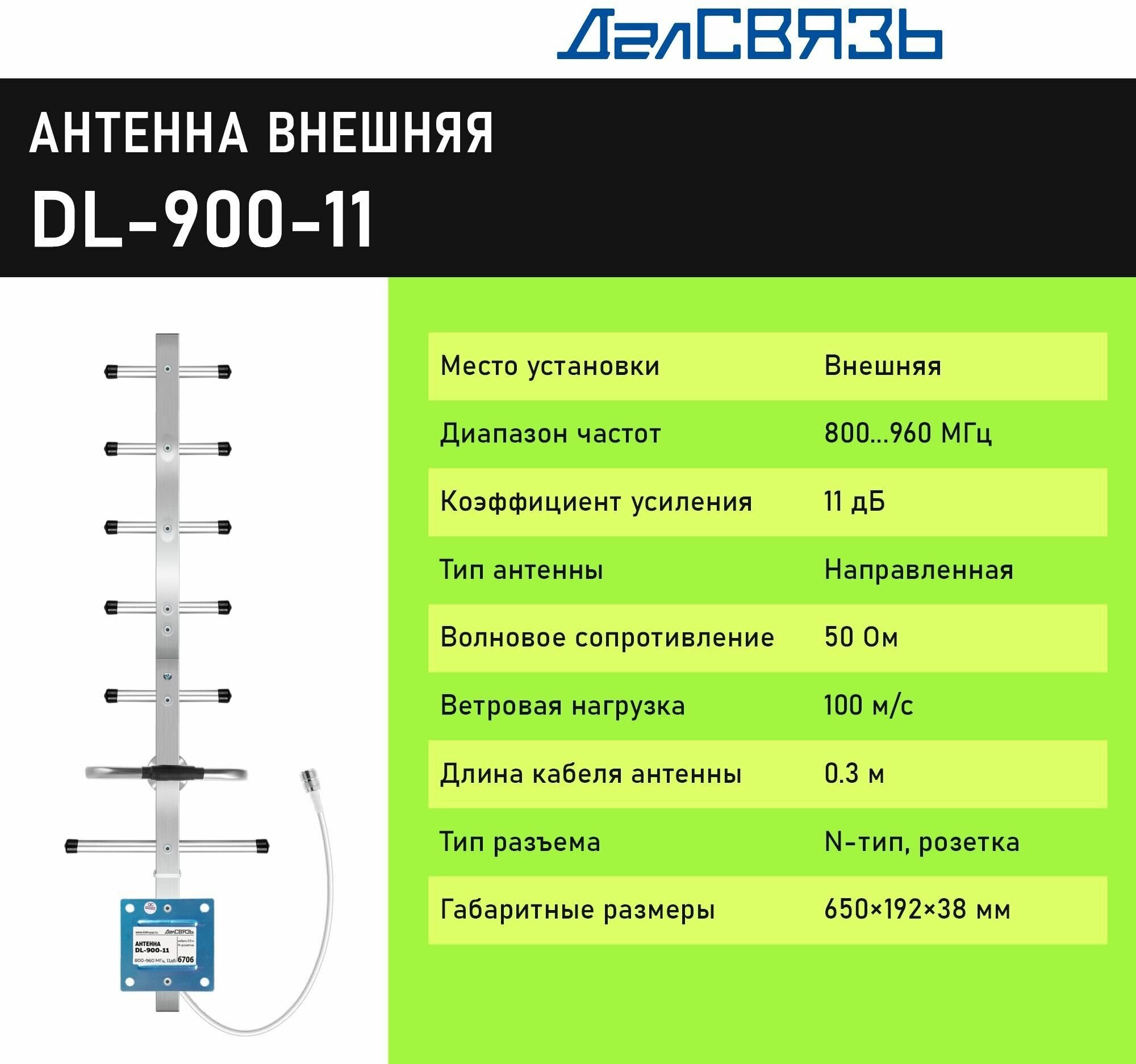 Antenna for strengthening the cellular signal DalSvyaz DL-900-11, directional, all-weather, narrowband. 2G GSM900, 3G UMTS900