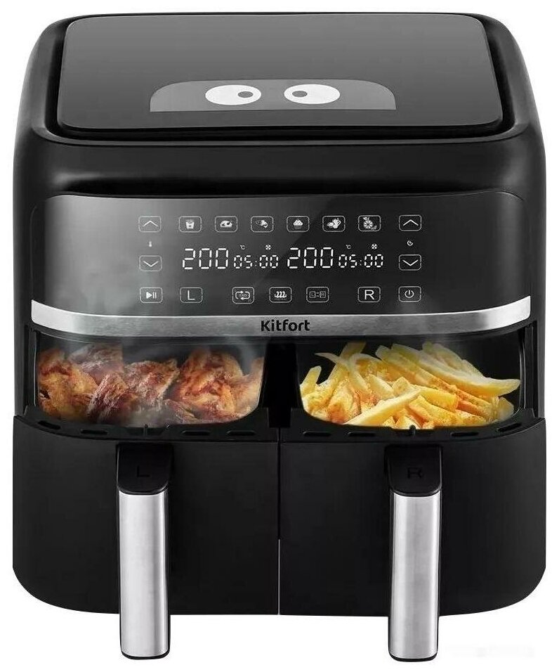 2 baskets with 2 control modules, you can cook 2 different dishes at once with different settings.