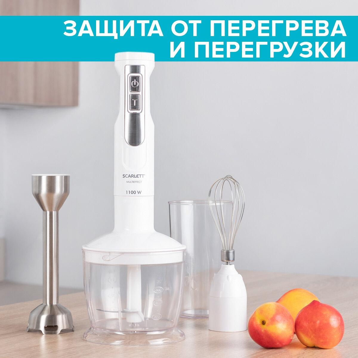 Type: submersible, maximum power: 1100 W, submersible part material: metal, attachments: whisk, chopper, included: measuring cup, modes: turbo mode, chopper capacity: 0.60 l, weight: 1.20 kg