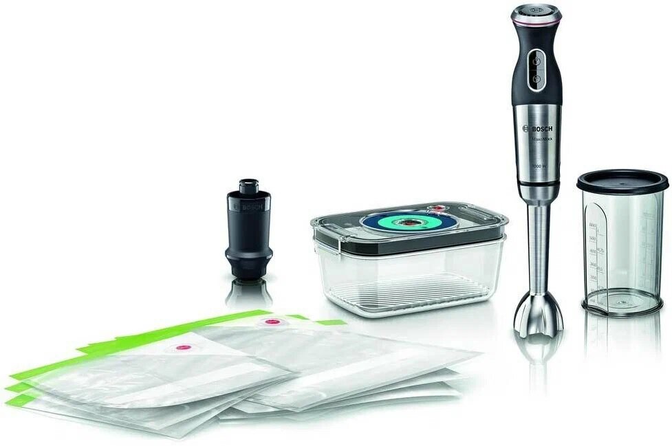 Type: submersible, maximum power: 1000 W, submersible part material: metal, attachments: vacuum pump, chopper, included: measuring cup, modes: turbo mode