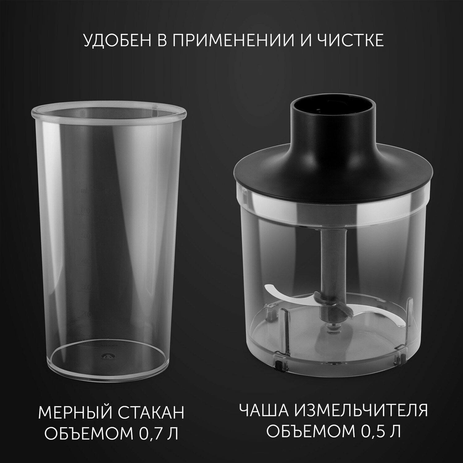 Type: submersible, maximum power: 800 W, submersible part material: metal, attachments: whisk, chopper, included: measuring cup, modes: turbo mode, chopper capacity: 0.50 l, weight: 1.06 kg