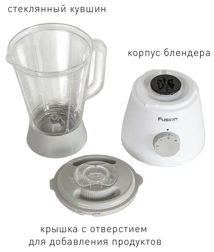 Type: stationary, modes: pulsed, design features: hole for ingredients