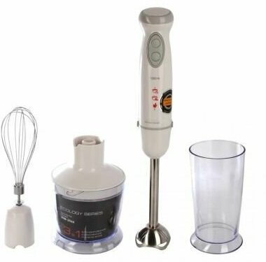 Type: submersible, immersion part material: metal, jug material: plastic, attachments: whisk, chopper, blender attachment, included: measuring cup, additional functions: Turbo mode