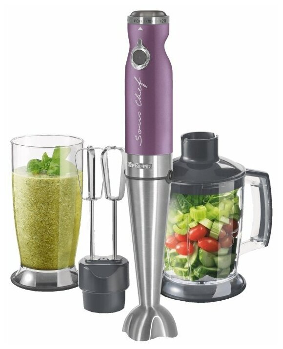 Type: submersible, maximum power: 1000 W, material of submersible part: metal, attachments: chopper, included: measuring cup, additional functions: stepless speed adjustment, weight: 1.90 kg