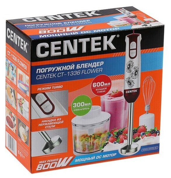 Centek CT-1336, submersible, 800 W, 0.3/0.6 l, 2 speeds, white-red./Package: 1