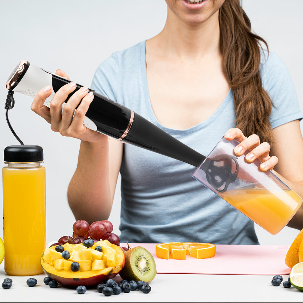 Type: submersible, maximum power: 1000 W, material of the submersible part: metal, attachments: whisk for whipping, for mashing, grinder, included: measuring cup, additional functions: ice pick, smooth speed