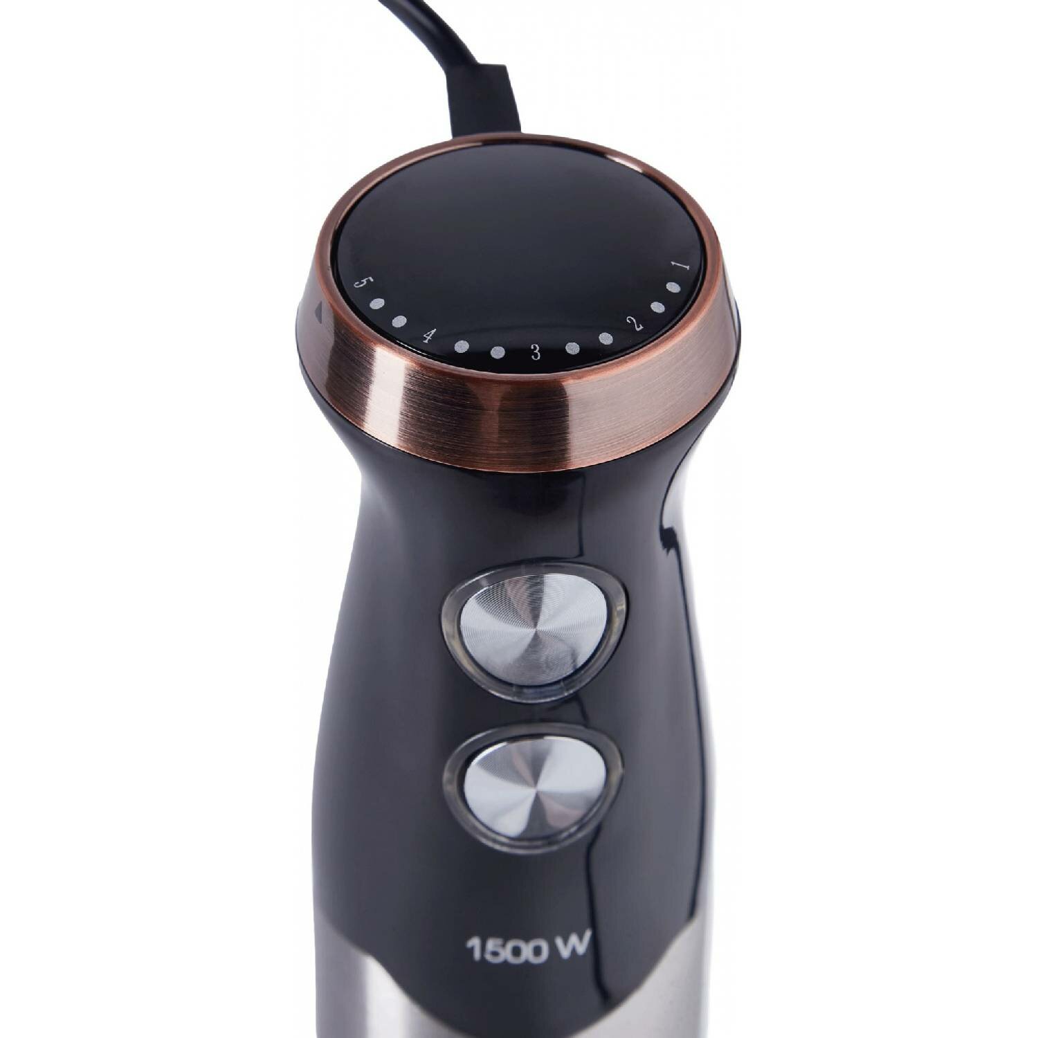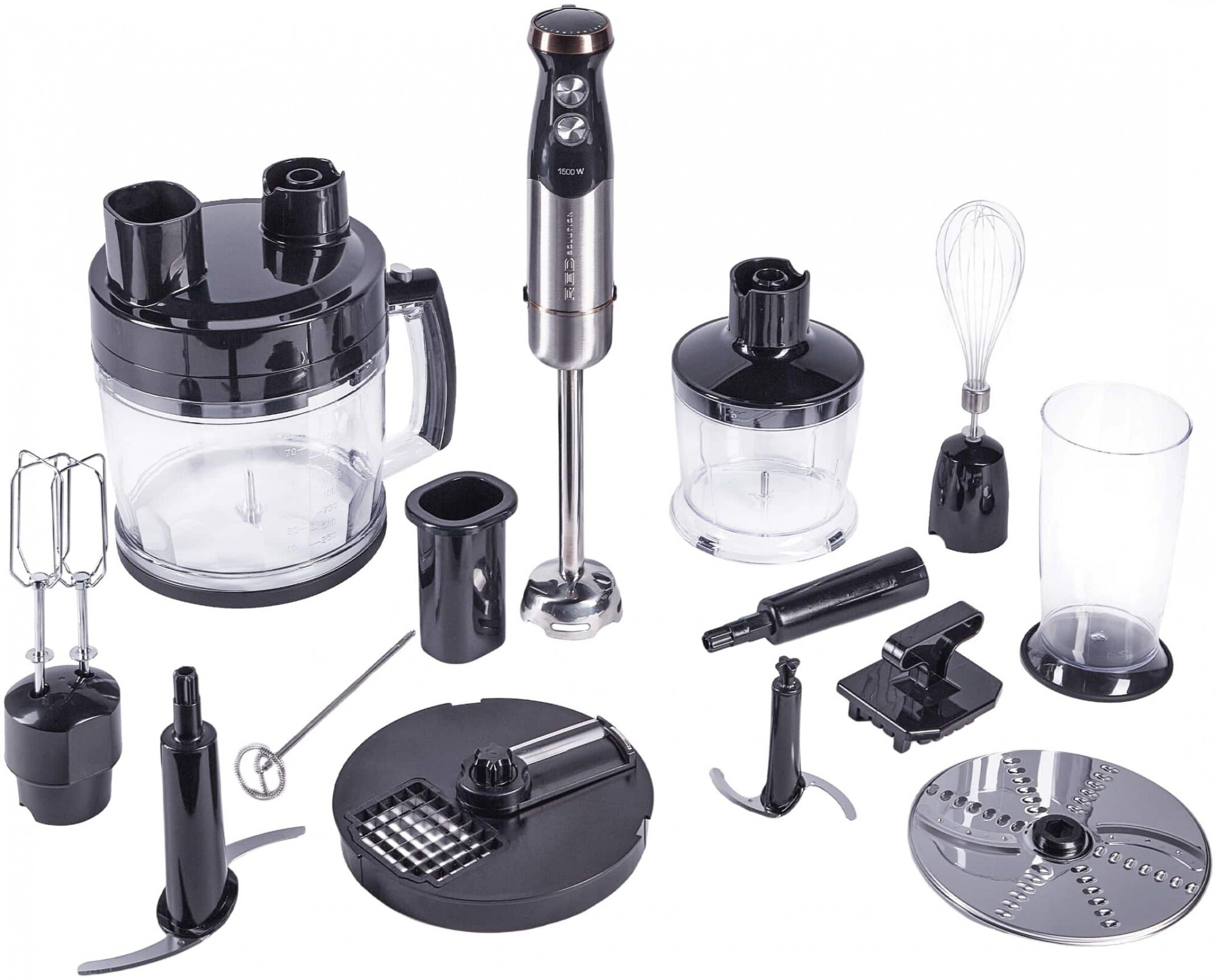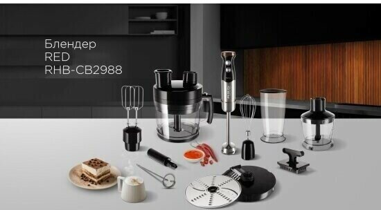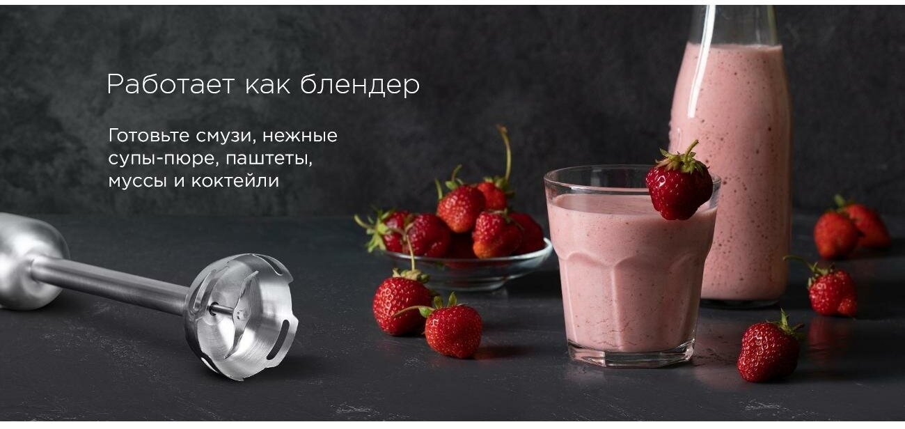 Type: submersible, maximum power: 1000 W, material of the submersible part: metal, attachments: whisk for whipping, for mashing, grinder, included: measuring cup, additional functions: ice pick, smooth speed