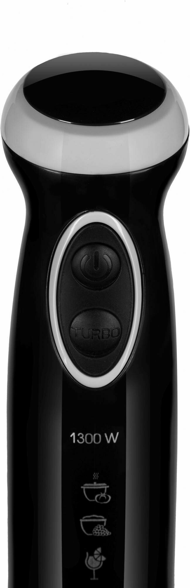 Type: immersion, maximum power: 1300 W, immersion part material: metal, jug material: plastic, attachments: whisk, chopper, For mixing, included: measuring cup, Chopper, modes: tour