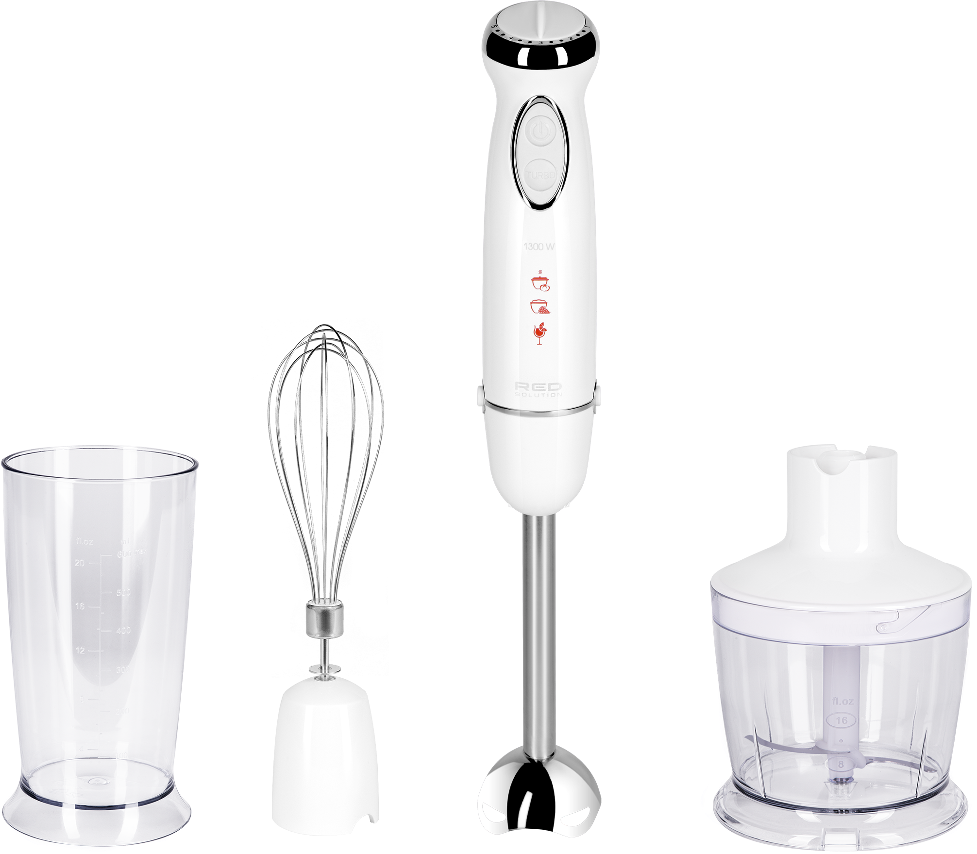 Type: submersible, maximum power: 1000 W, material of the submersible part: metal, attachments: whisk for whipping, for mashing, grinder, included: measuring cup, additional functions: ice pick, smooth speed