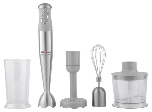 Type: submersible, maximum power: 1000 W, material of the submersible part: metal, attachments: whisk for whipping, for mashing, grinder, included: measuring cup, additional functions: ice pick, smooth speed