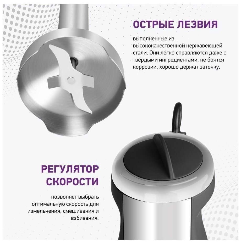 Type: submersible, maximum power: 1450 W, attachments: whisk, chopper, included: measuring cup, modes: turbo mode