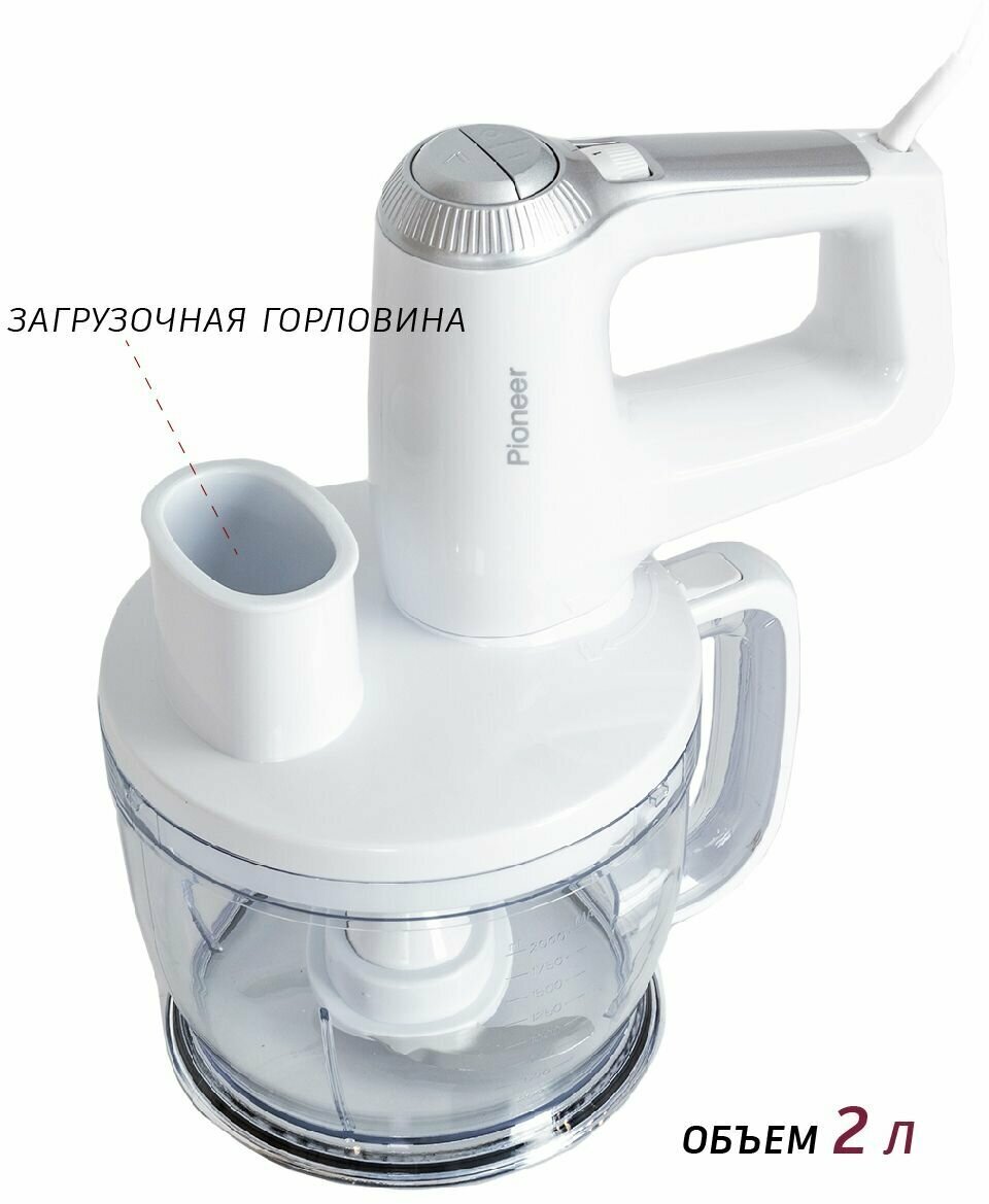 Type: submersible, maximum power: 500 W, submersible part material: metal, attachments: whisk, for kneading dough, chopper, shredding attachment, grater, blender attachment, whisk, grinder