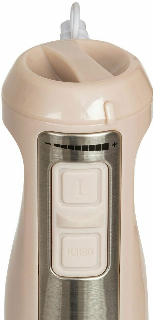 Type: submersible, immersion part material: metal, jug material: plastic, attachments: whisk for whipping, disk for slicing, for kneading dough, chopper, shredding attachment, blender attachment, included