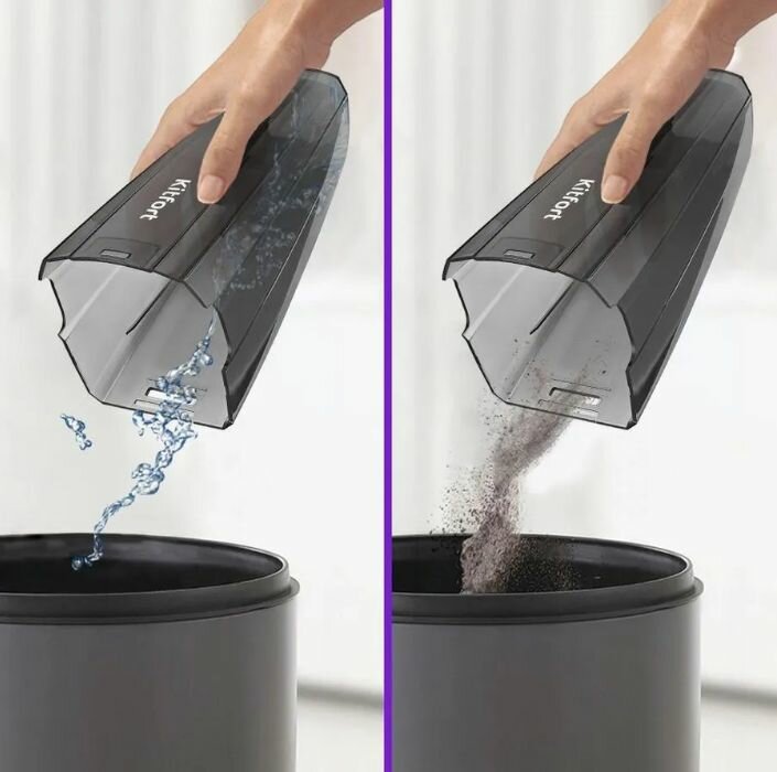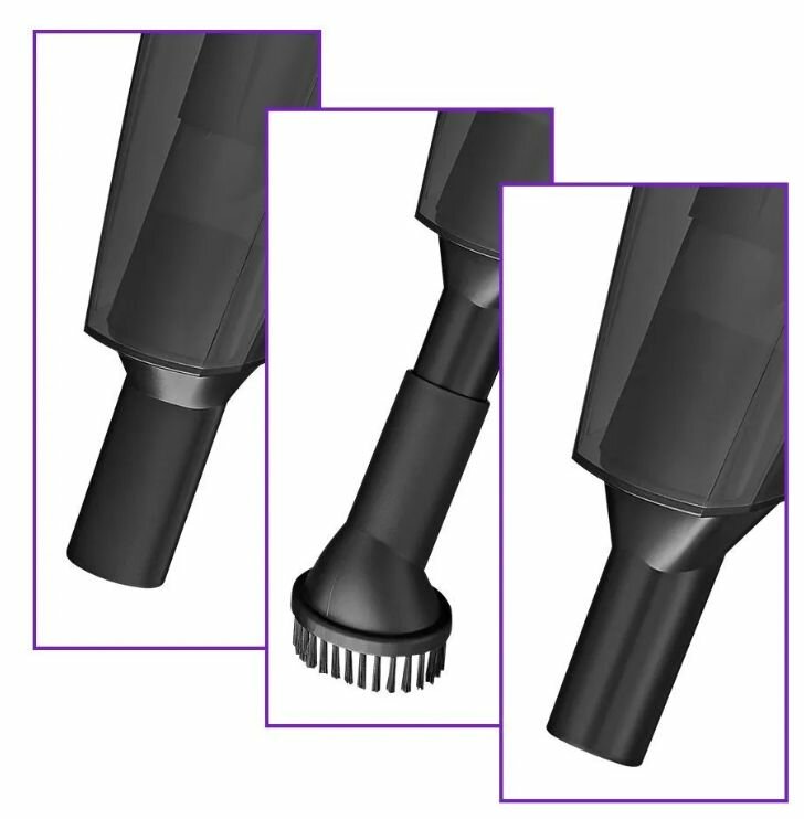 Storage space for attachments, power control on the handle, liquid collection