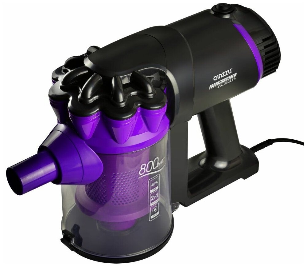 Cyclone filter. Washable HEPA filter.