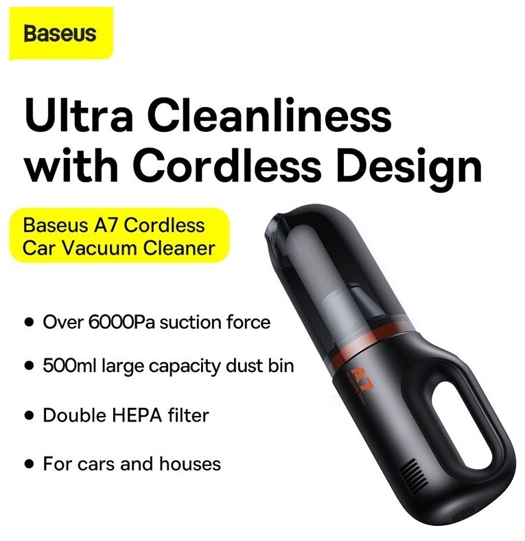 Compact wireless vacuum cleaner Baseus A7 Cordless, 2000 mAh, 6000Pa, Space Gray, VCAQ020013