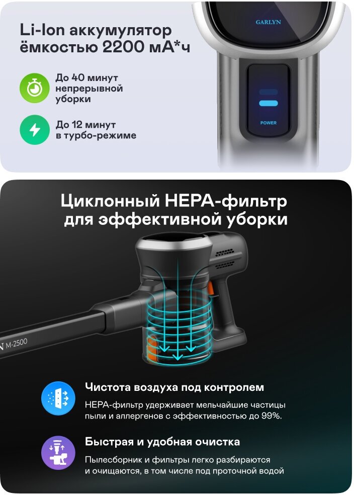 Vertical wireless vacuum cleaner GARLYN M-2500