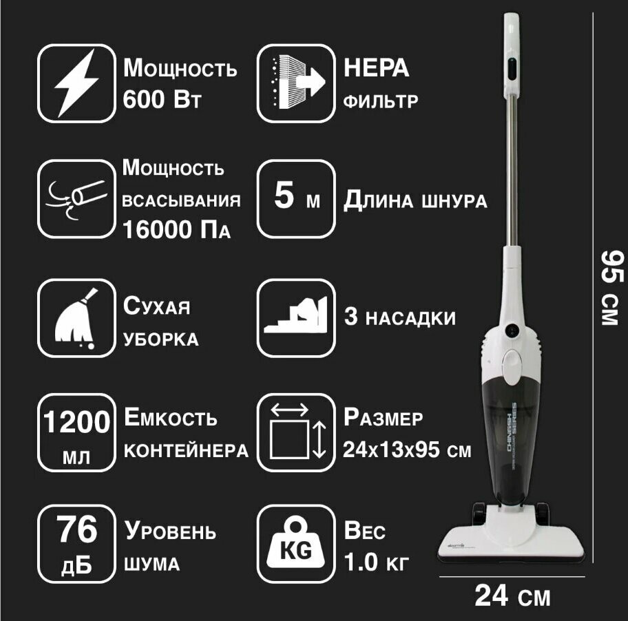 Cleaning type: dry, power type: mains power, detachable hand vacuum cleaner, equipment: nozzle for upholstered furniture, crevice nozzle, HEPA filter, design features: vertical parking, height: 101.95 cm, weight: 1.86 kg