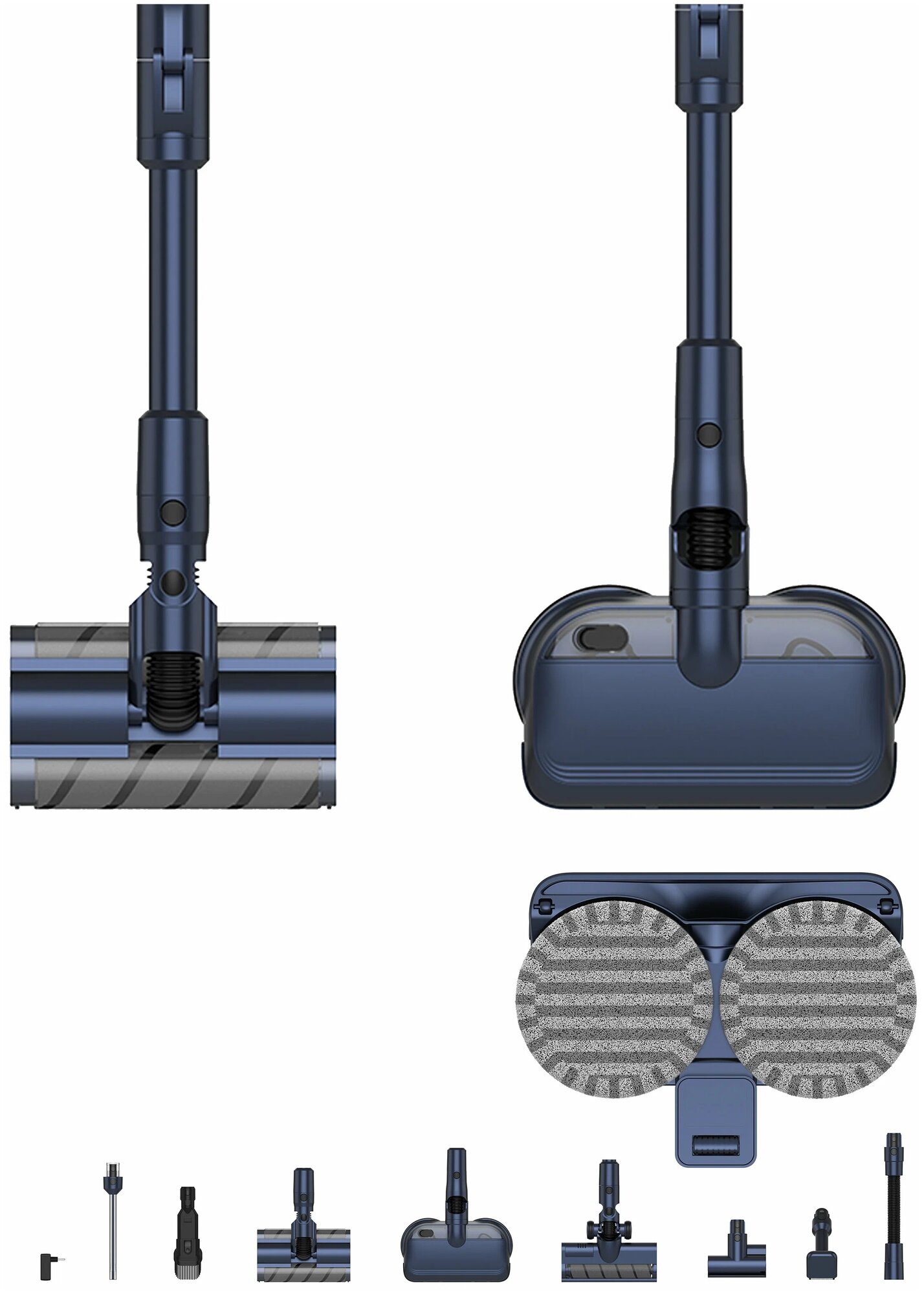 Cleaning type: dry and wet, power type: battery powered, battery operating time: 25 min, battery type included: Li-Ion, detachable hand vacuum cleaner, accessories: charger, combination nozzle
