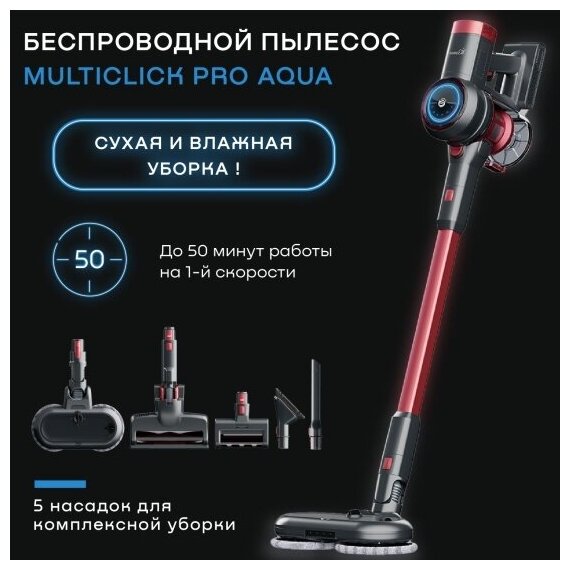 Cleaning type: wet, dry, power type: battery powered, battery operating time: 50 min, battery type included: Li-Ion, detachable hand vacuum cleaner, equipment: turbo brush, universal nozzle for wet cleaning