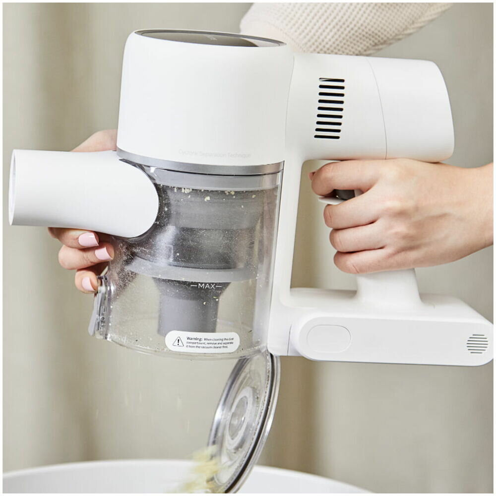Cleaning type: dry, power type: battery powered, replaceable battery, detachable hand vacuum cleaner, equipment: turbo brush, HEPA filter, cyclone filter, additional functions: dust mite removal, design features