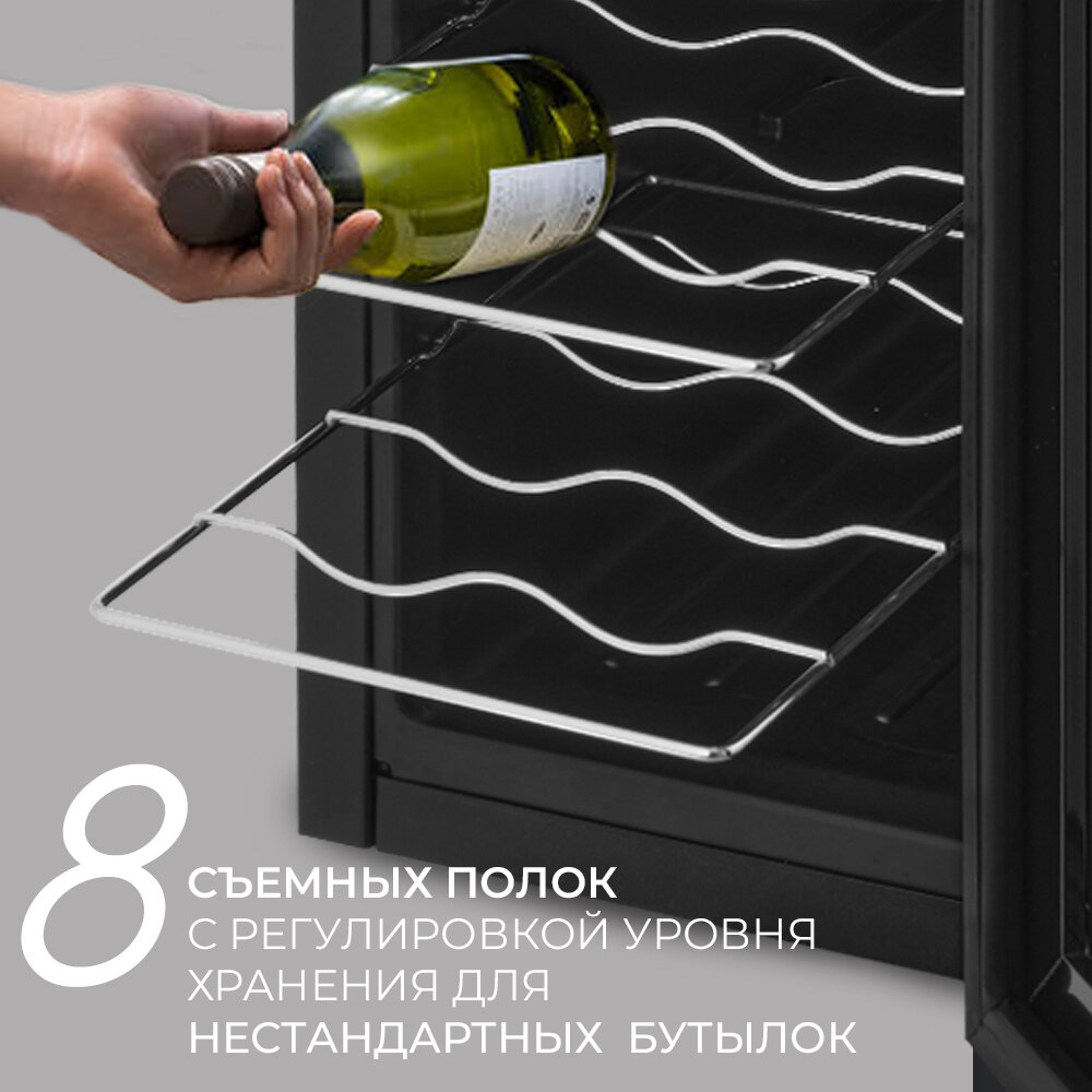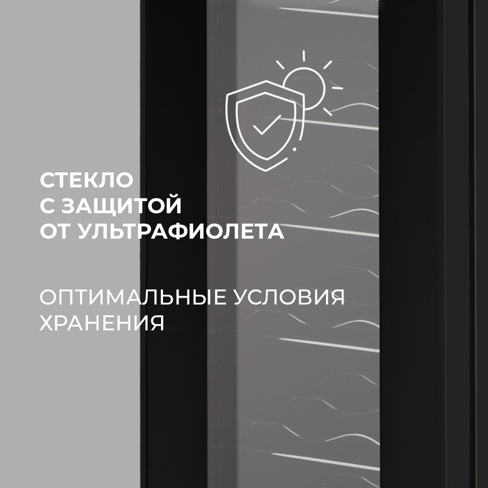 Wine cabinet type: multi-temperature, wine cabinet capacity, bottles: 18, number of chambers: 1, energy class: C, body color: black