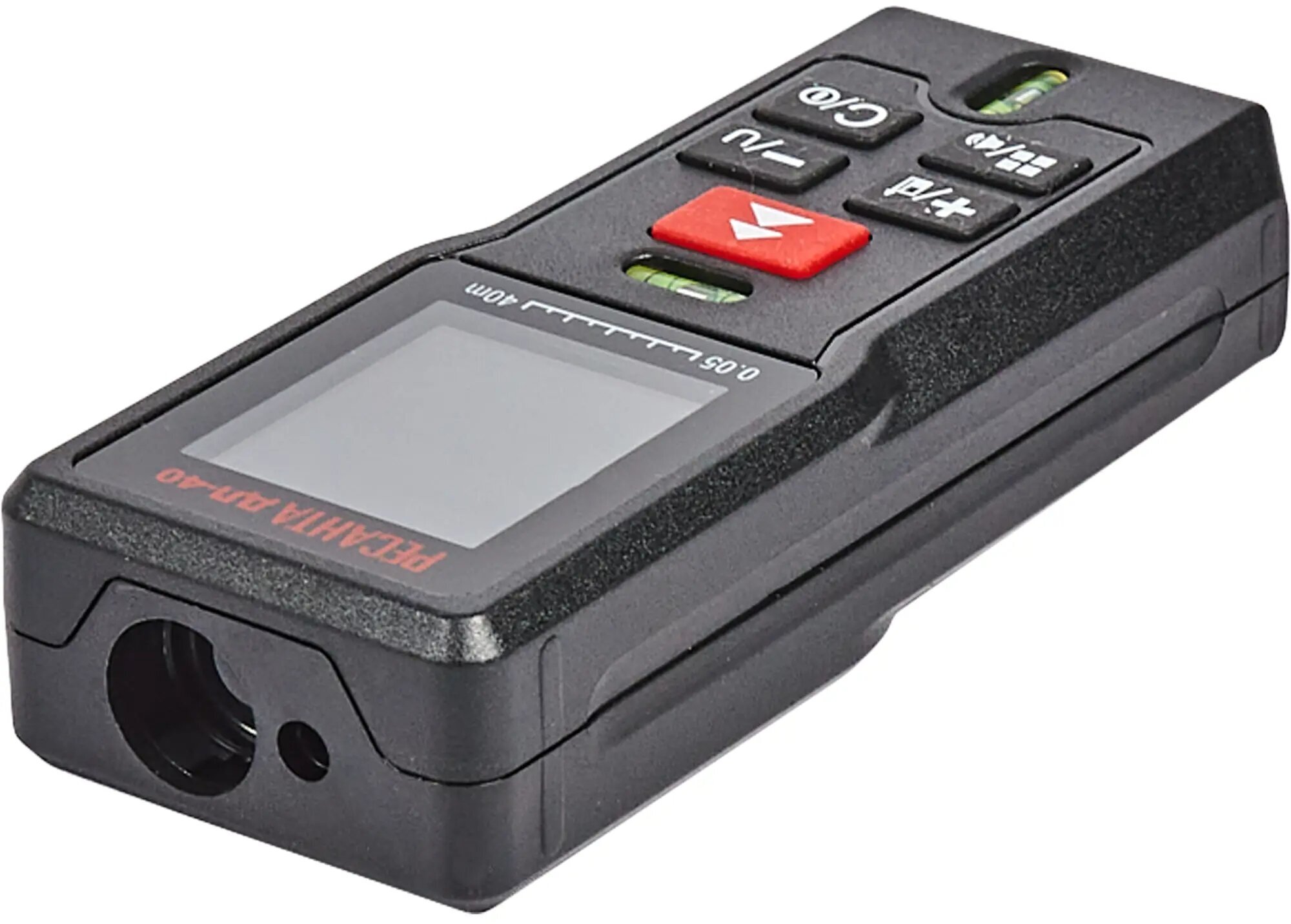 Type: laser, measurement range without reflector: 40 m, minimum measurement distance: 5 cm, measurement accuracy: 2 mm, number of reference points: 3, number of stored measurements: 20, display backlight, auto-off