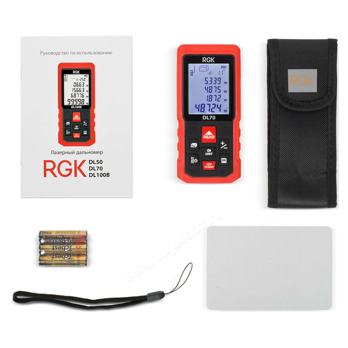 Type: laser, measurement range without reflector: 70 m, measurement range with reflector: 70 m, measurement accuracy: 2 mm, number of reference points: 3, number of stored measurements: 30, display backlight, audible