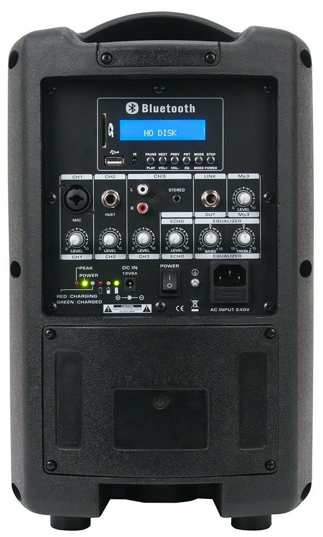 Built-in battery up to 8 hours of operation; connector for connecting a microphone, SD card, USB drives; Bluetooth support