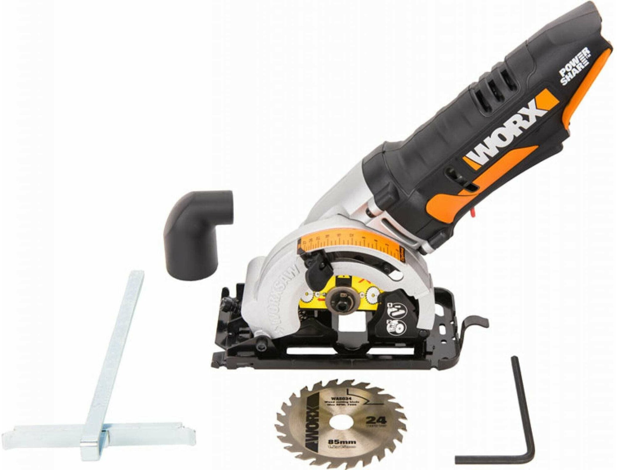 Blade diameter: 85 mm, cutting depth 90°: 27 mm, power type: battery, battery voltage: 20 V, design features: mini saw