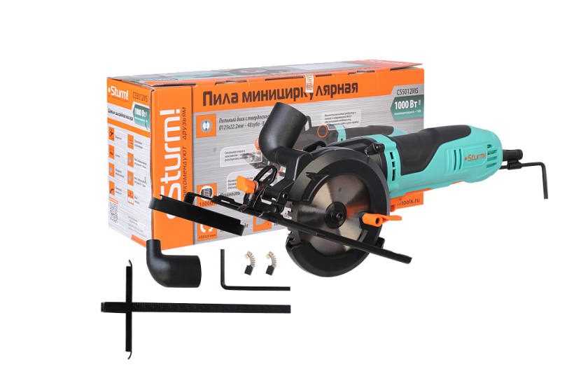 Saw blade - 1 pc., parallel guide - 1 pc., adapter for vacuum cleaner - 1 pc., hex wrench - 1 pc., instruction manual