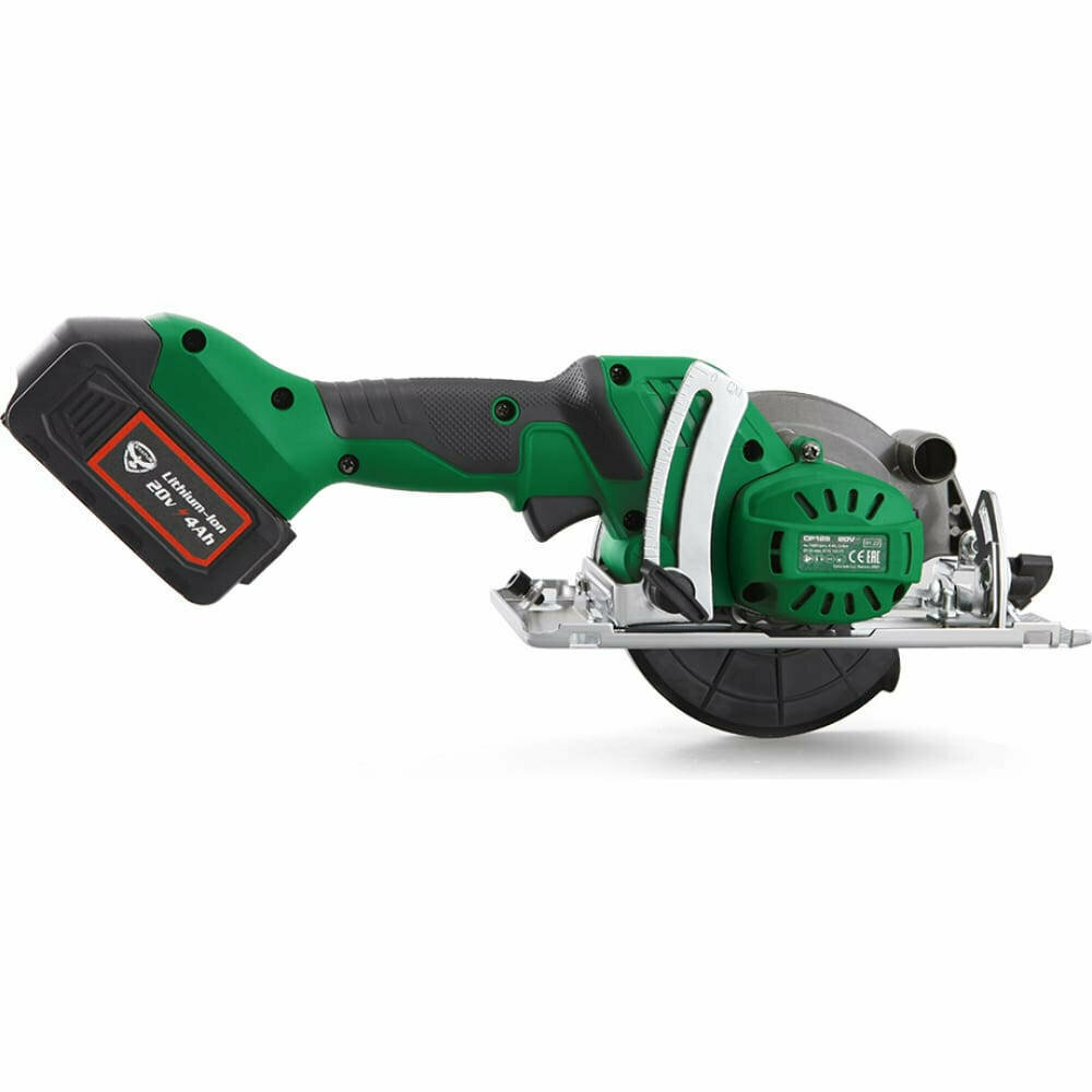 Blade diameter: 125 mm, cutting depth 90°: 41 mm, power supply: battery, battery voltage: 20 V, design features: spindle lock