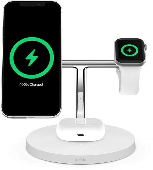 BoostCharge Pro 3-in-1 Wireless Charging Station with Official MagSafe 15W Support, White