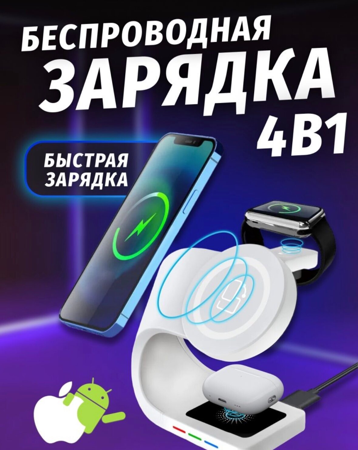 The charging station should be connected to a power supply with the QC3.0 fast charging function, outputting 3A!. Not included, must be purchased separately!!!