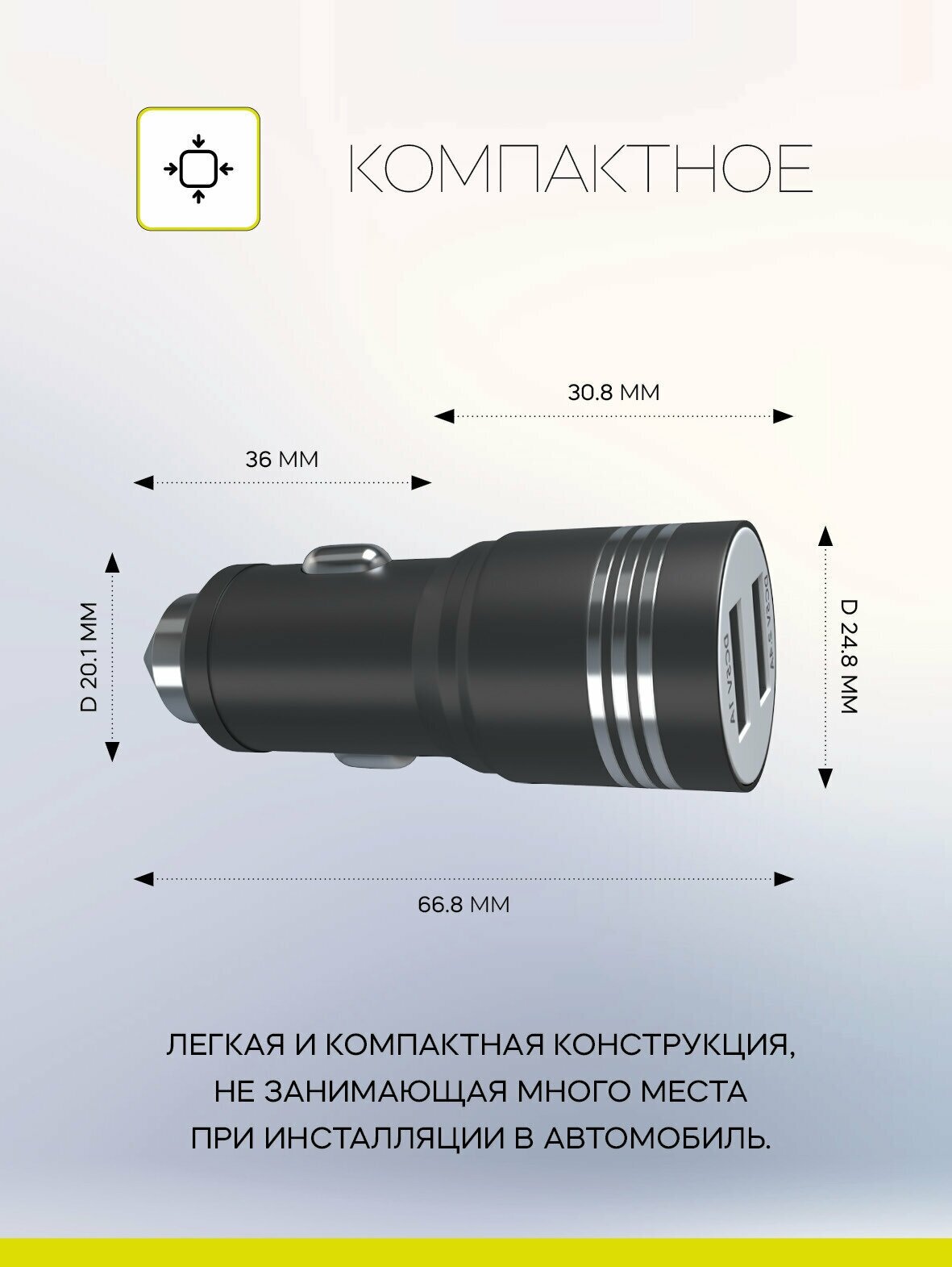 Car charger 2 USB 2.4A, USB cable - Type-C 2.4A included/AZU/black
