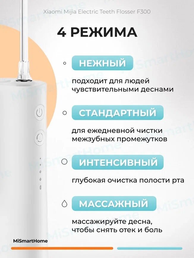Power supply: battery powered, type: irrigator, operating principle: pulsed, attachments: for jet cleaning, for cleaning implants and crowns, for cleaning tongue, orthodontic for braces, periodontal for gums