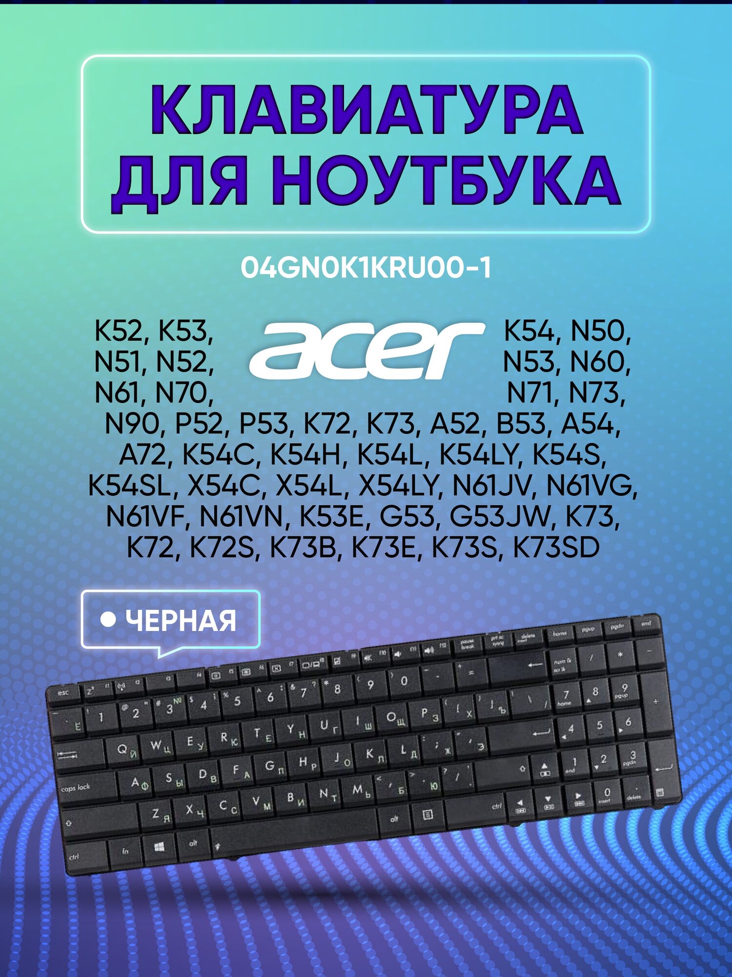 Compatibility: Asus K52, K53, K54, N50, N51, N52, N53, N60, N61, N70, N71, N73, N90, P52, P53, K72, K73, A52, B53, A54, A72, UL50, W90, PRO5IJ, F50, X52, X54, X55, X75V, PRO5AVn, PRO64Vg, PRO7BJg, K54C, K54H, K54L, K54LY, K54S, K54SL, X54C, X54L, X54LY, n61ja, n61jq, N6