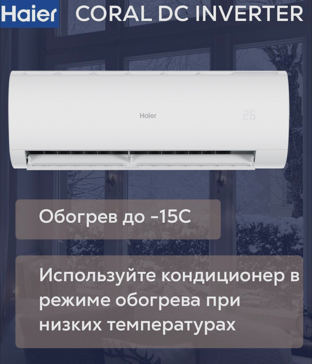 Display, remote control, air flow direction adjustment, on/off timer, control from a smartphone, Wi-Fi module, Auto restart, Anti-corrosion coating, Hidden display, Off timer