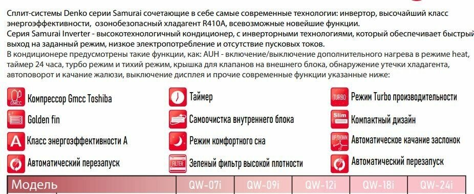 Winter set, remote control, air flow direction adjustment, on/off timer, Auto-cleaning, Auto-restart, Anti-corrosion coating, Hidden display, Off timer