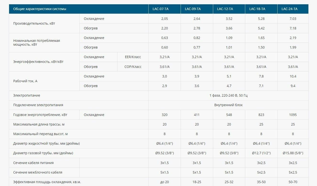 Air consumption of the outdoor unit, m3/h 1500; Air consumption of the indoor unit cooling/heating, m3/h 430/430