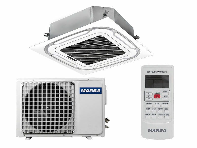 Air conditioner type: cassette, room area: 31 – 54 m², operating mode: heating, cooling, Cold/heat, additional modes: dehumidification, forced ventilation, features: display