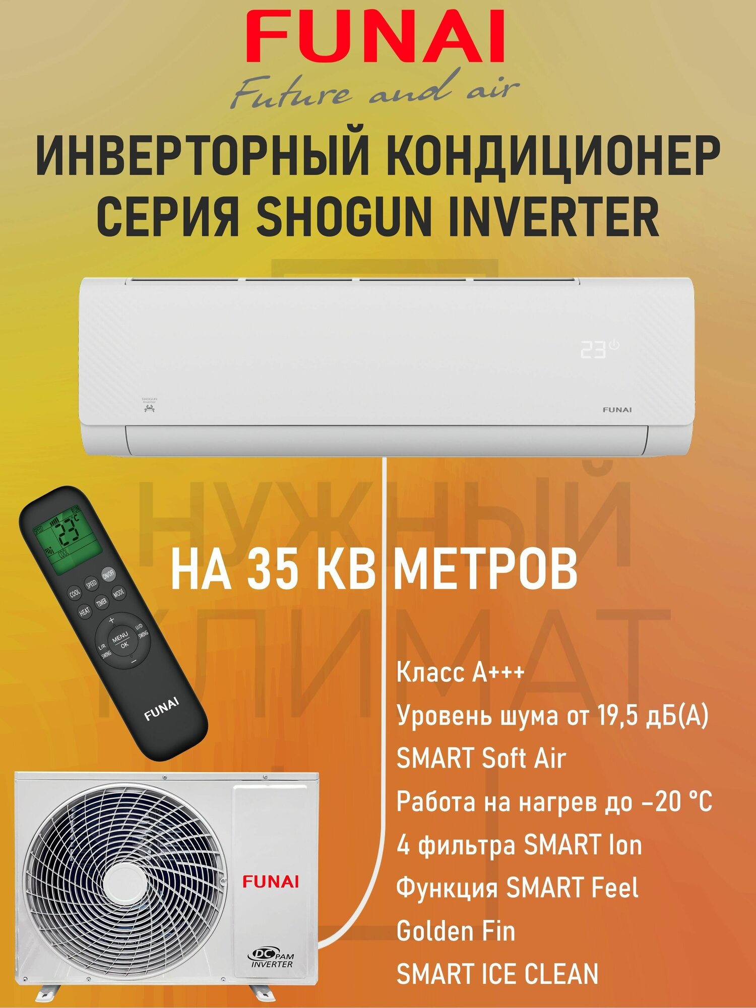 Air conditioner type: split system, room area: 31 – 54 m², inverter, Air conditioner power BTU: 12, operating mode: heating, cooling, Dehumidification, additional modes: breeze, ventilation, night, dehumidification, turbo, eco mode